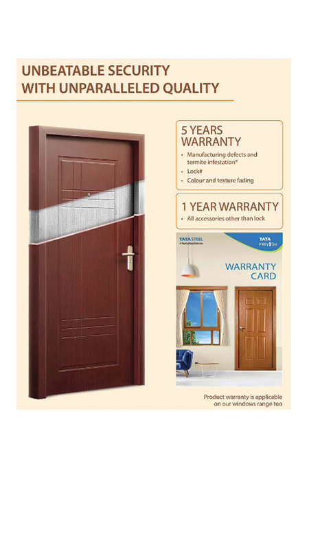 • MAINTENANCE-FREE: Tata Pravesh doors are 7 times more resistant to warpage than wooden doors.